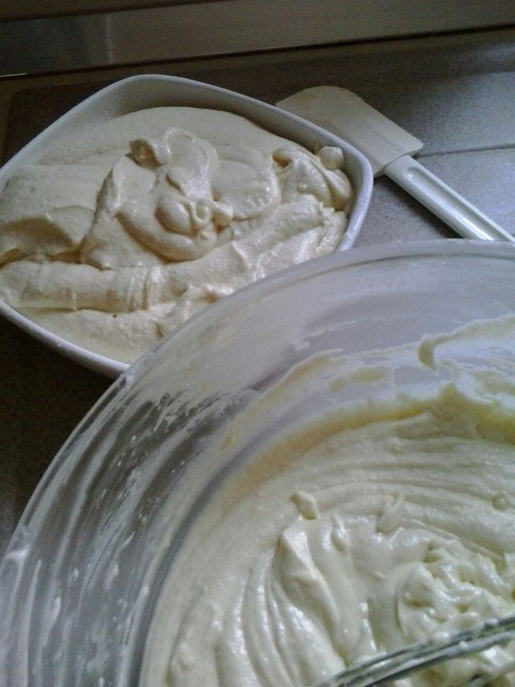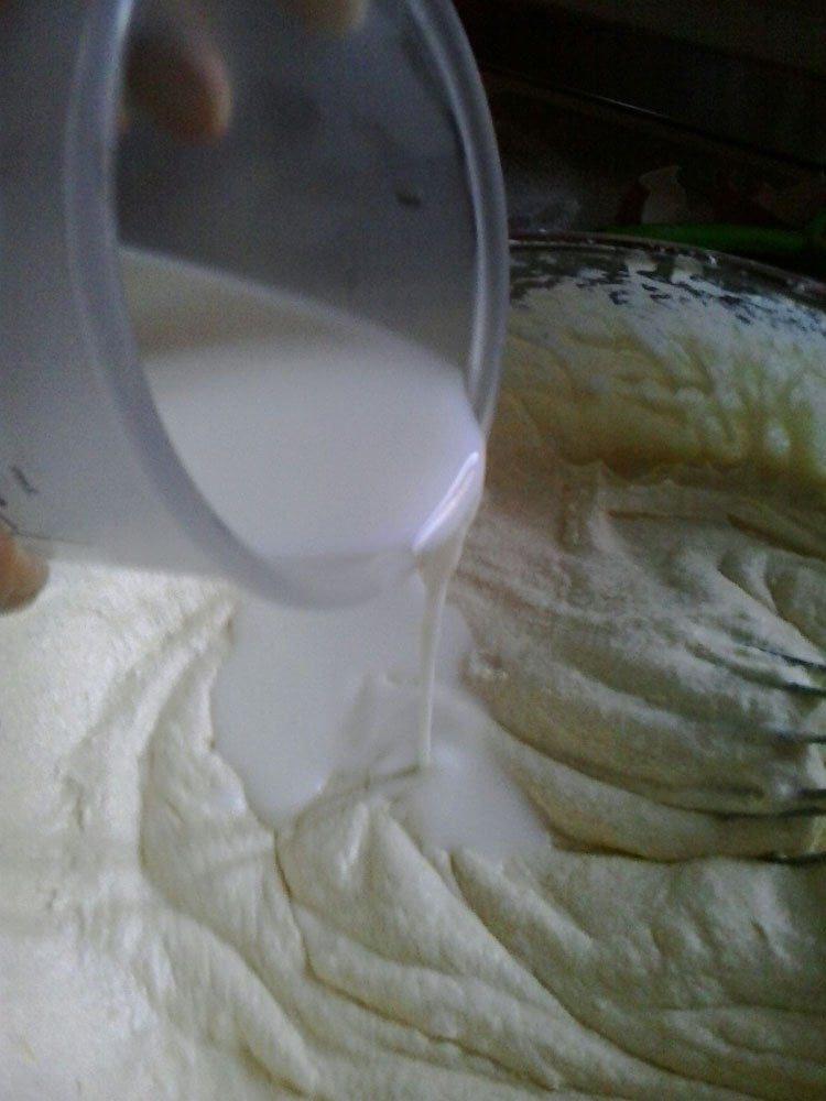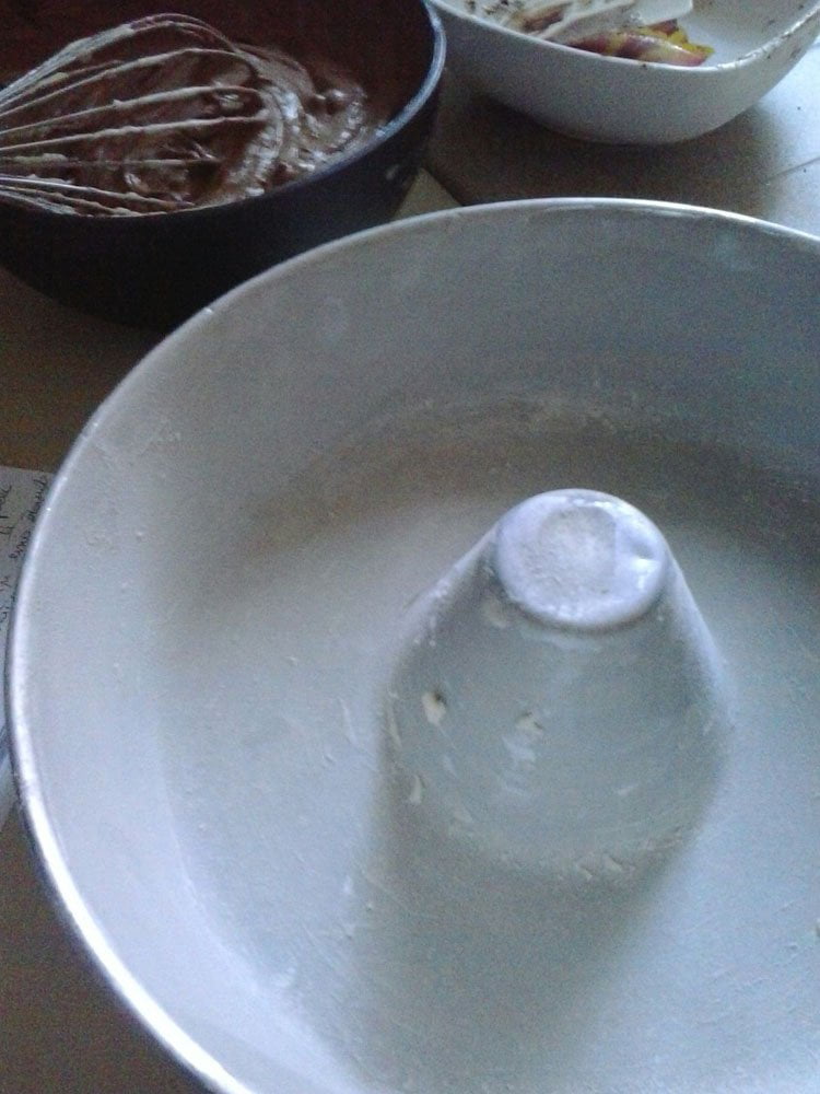 Ingredienti: farina00 500g, zucchero 300g, bustina di lievito 1, latte 300ml, burro 250g, uova 6, cacao amaro 30g, gocce di cioccolato 50g, scorza di 1 limone o arancia, 1 pizzico di sale.