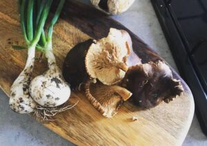 1 Lavate e pulite la cipolla e con un tovagliolo pulite i funghi dal terreno.