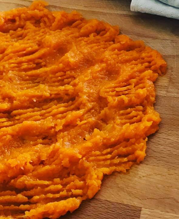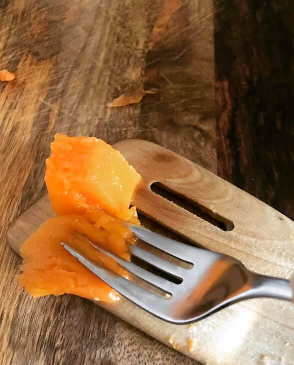 2 Lessate in abbondante acqua la zucca e in seguito, con i rebbi di una forchetta, controllate la cottura. Mettetela in uno scolapasta e schiacciatela, così perderà un po della sua acqua.