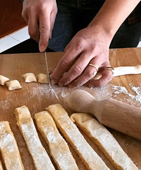 9 Tagliate a tocchetti le code formando così i vostri gnocchi. Disponeteli poi su di un vassoio infarinato.
