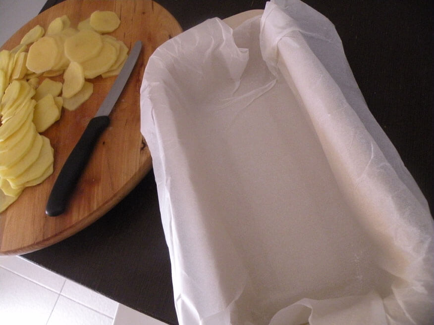 Ponete in forno a 200° per 40 min circa e se vi piace un sapore più rustico, per cinque minuti, verso la fine della cottura, mettete il forno in modalità grill, così da formarsi una crosticina in superficie. Tirate fuori dal forno e attendete circa 15 min. prima di sformarlo, in modo che si rassetti e sia facilitata l’estrazione dal tegame delle patate.