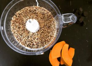 Ingredienti: zucca 600g, zucchero 180g, farina00 300g, nocciole 300g, olio di semi di girasole 100ml, vanillina 1 bustina, lievito 1 bustina.