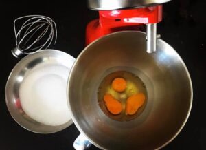 03. In una ciotola montate con le fruste le uova e lo zucchero fino a quando saranno bianchi e spumosi.