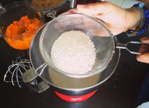 06. Quando le polveri si saranno assorbite aggiungete la farina di nocciole.