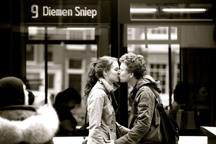 La sua collezione di baci comprende ormai più di 1000 fotografie scattate a persone comuni riprese nella loro straordinaria quotidianità.