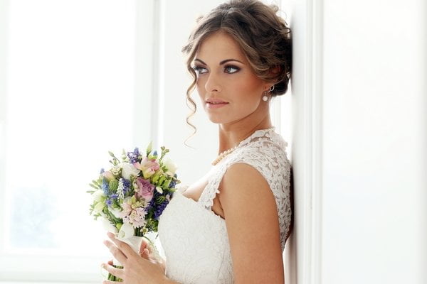 In caso di abito più tradizionale, la soluzione potrebbe essere comunque un’acconciatura a boccoli però raccolti dietro la nuca con forcine decorate da cristalli o perline. Questa soluzione dà evidenza alle spalle ed al collo e consente di far risaltare meglio i dettagli.