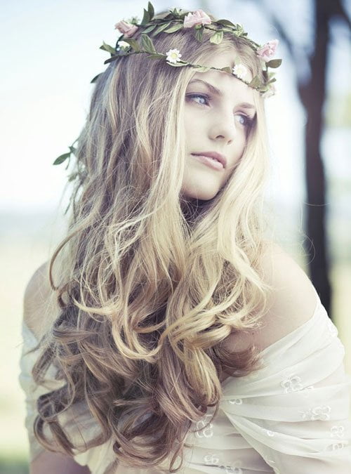 Se si sceglie di seguire la tendenza del momento che prevede abiti leggeri e svolazzanti, anche il capello dovrà essere armonizzato con un’acconciatura semplice, molto naturale. Per uno stile country chic sarà perfetto un capello sciolto con boccoli morbidi, non troppo lunghi, magari impreziosito da una coroncina di fiori freschi.