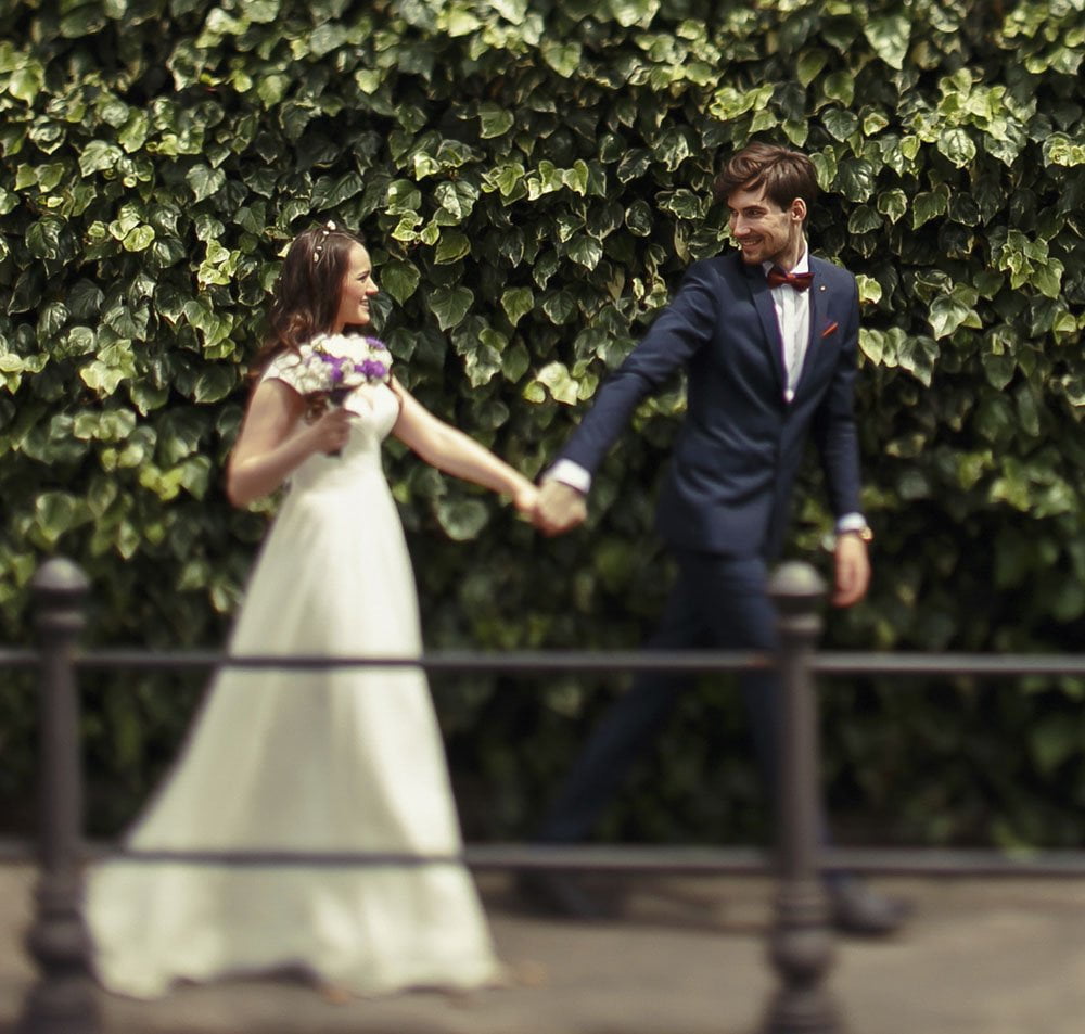 Il taglio, il tessuto, il modello del suo abito. Ma lo sposo? L’unico momento in cui è protagonista della scena, è quando sull’altare o al Comune, attende la sua futura moglie. Sguardo teso ed emozione palpabile, un sorriso tirato a dissimulare la tensione…e il suo abbigliamento?