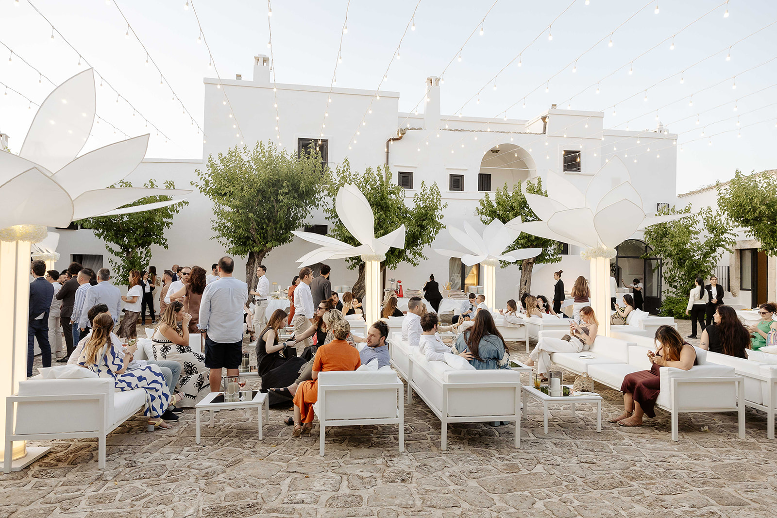 Lì, in una sera d’inizio stagione, abbiamo accolto 70 coppie: sorridenti, curiose, innamorate. Accanto a loro, un team di professionisti del matrimonio, fioristi, musicisti, artigiani, hair stylist, designer, fotografi, wedding planner. Ognuno con una visione unica, ma tutti uniti da un obiettivo comune: aiutare le coppie a costruire qualcosa che sia solo loro, mostrare che il matrimonio in Puglia può essere tutt’altro che un rigido protocollo. Niente cliché, niente regole ferree da seguire. Solo bellezza, personalità, autenticità.