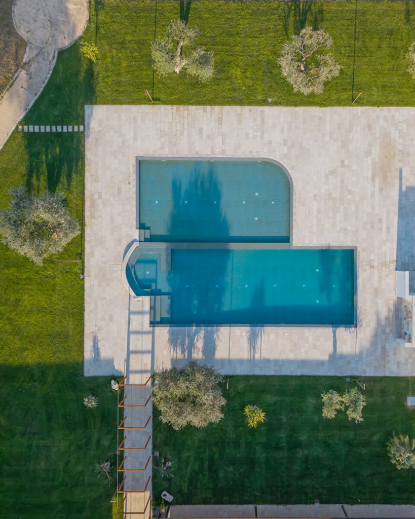 Poi un brindisi sotto il cielo stellato, tra luci sospese e risate leggere. Le sale interne, come il Salone Grecale e il Salone Maestrale, accolgono gli ospiti con grandi vetrate, archi in tufo e un’eleganza autentica. Ogni dettaglio è pensato per farvi sentire a casa, ma in un sogno. E poi c’è la piscina panoramica, incastonata nel paesaggio come uno specchio d’azzurro, perfetta per momenti di relax o scatti che resteranno per sempre.
