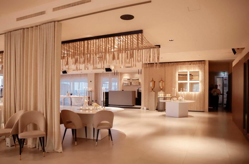 La location, elegante e moderna, è pensata per offrire un’esperienza sensoriale completa: dai piatti gourmet firmati dallo chef Mario Musci alla vista mozzafiato sul mare.