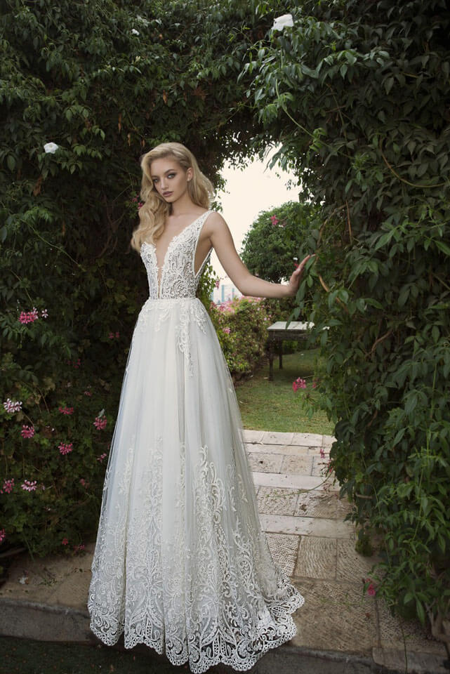 Galia Lahav, abbina la leggerezza del pizzo, la ricercatezza del ricamo e l’impalpabilità