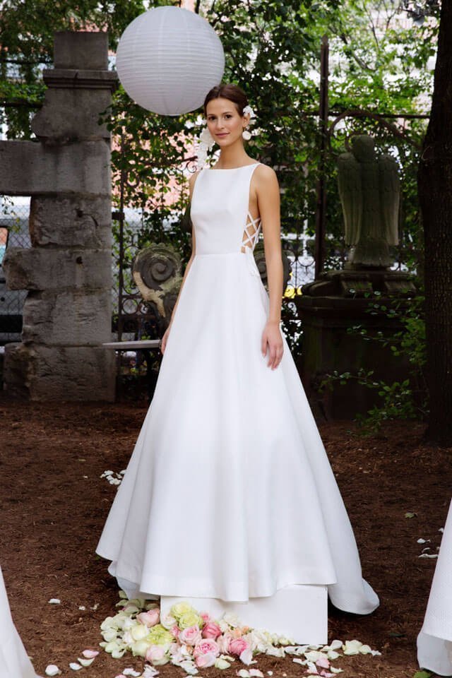 Decorazioni jacquard e semplici silhouette per la sposa fresca e moderna di Lela Rose.