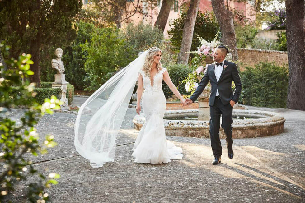 Il forte richiamo della storia li ha portati ad escludere le masserie e ad optare per Villa Meo Evoli, una dimora storica in stile Palladiano, costruita nella seconda metà del 1700, vincolata dalla Soprintendenza ai Beni Artistici e Culturali per la sua valenza storica e artistica nel patrimonio nazionale. Una villa che sorge a pochissimi chilometri da Monopoli, nel verde della campagna pugliese, fra ulivi secolari, in una zona che ha preso il nome di “Miglio d’Oro”. Villa Meo-Evoli, raffinato ed esclusivo esempio di dimora storica, all’eleganza dei suoi ambienti interni arredati con mobili d’epoca, abbina un ettaro di splendidi giardini in stile italiano con alberi secolari, vialetti, fontane, reperti archeologici. A completare tanta bellezza, un trullo del 1600 restaurato e reso abitabile ed una piscina di 20 mq.