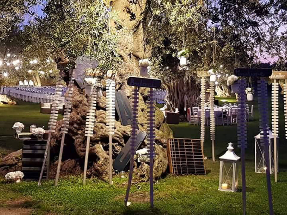 Uno scenario che allieta gli invitati ammirati dai giochi di luce tra gli alberi, dagli intermezzi affascinanti e coinvolgenti di abili Artisti di strada che, attraggono adulti e bambini, dagli interventi a sorpresa di amici e dalla colonna sonora che con la musica e il canto spazia dal classico al moderno.